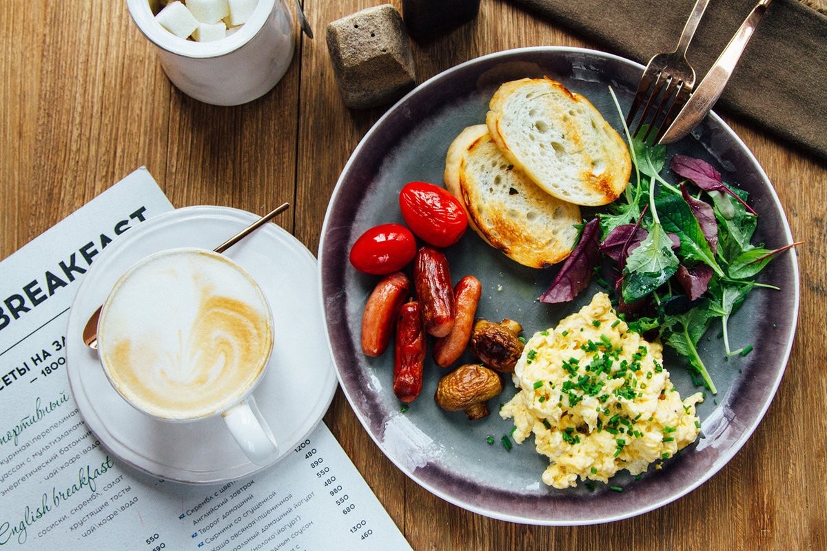 Большой выбор завтраков, заказывать их можно в течение всего дня. Интересные позиции в меню, много вегетарианских опций.